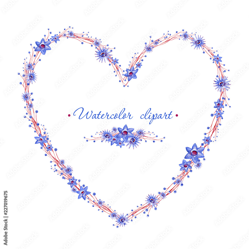 Floral Blue Wreath With Brown Branches Heart Shaped Cliparts For Wedding Design Artistic Creation Stock Illustration Adobe Stock