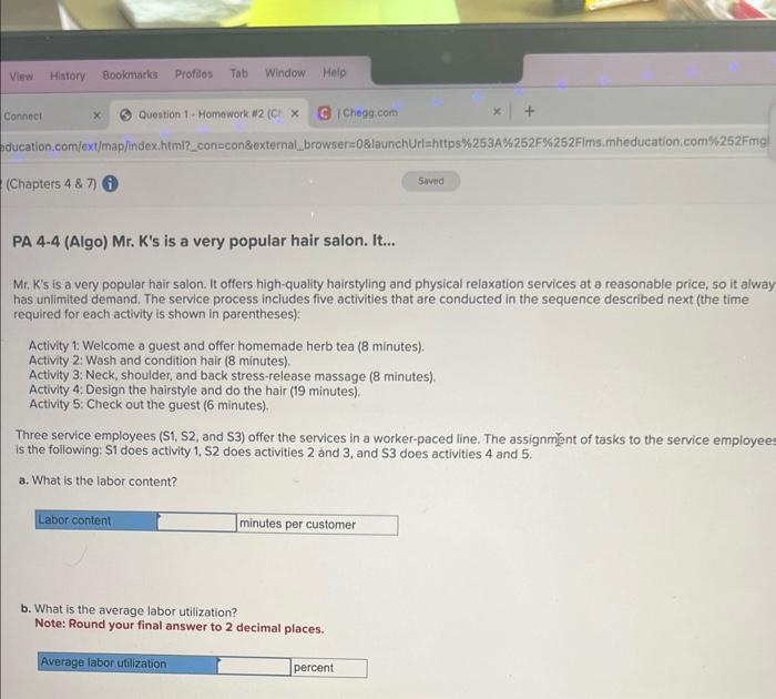 Solved Pa 4 4 Algo Mr K S Is A Very Popular Hair Salon Chegg Com